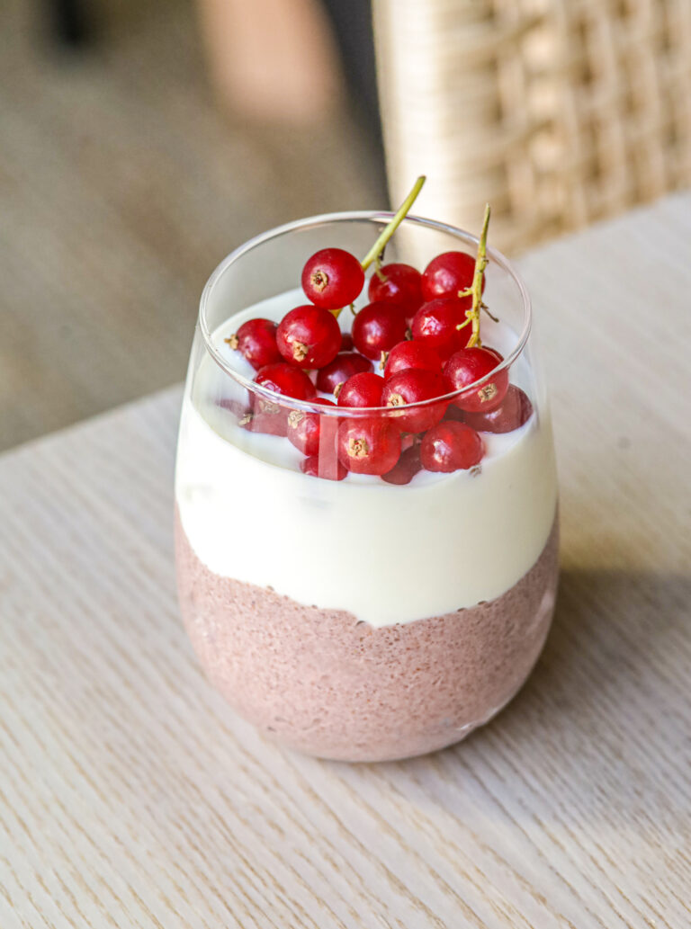 Chiapudding is heel eenvoudig te maken: je doet chiazaad met wat vocht, zoals plantaardige melk, in een bakje en zet het in de koelkast. Ongeveer vier uur later heb je chiapudding! Dit komt omdat chiazaad vocht absorbeert en daardoor een gellerig laagje vormt. Maar niet iedereen houdt van deze structuur. Daarom maak ik het vaak nét even anders: we blenden eerst het chiazaad met de plantaardige melk en het fruit, en laten het vervolgens opstijven in de koelkast. Hierdoor is de structuur een stuk luchtiger en fijner. Heerlijk als ontbijt of toetje!