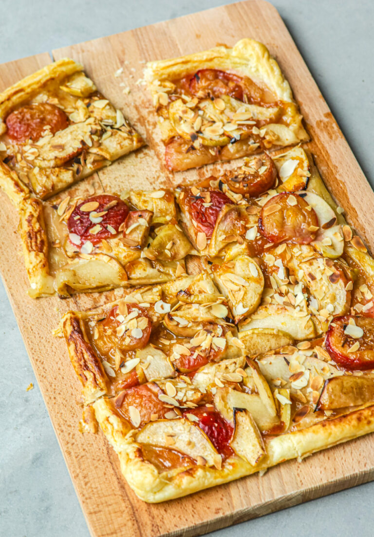Appels en pruimen vullen elkaar perfect aan: waar appel fris en zachtzuur is, brengen pruimen juist die diepe, jamachtige zoetheid. Hoewel juist ook de pruim zuurder kan zijn en de appel zoeter. Het ligt maar net aan het ras en de rijpheid! Maar hoe dan ook: ze passen bij elkaar. Door ze samen te bakken op bladerdeeg ontstaat er een heerlijke balans tussen fris, zoet en een knapperige bodem.